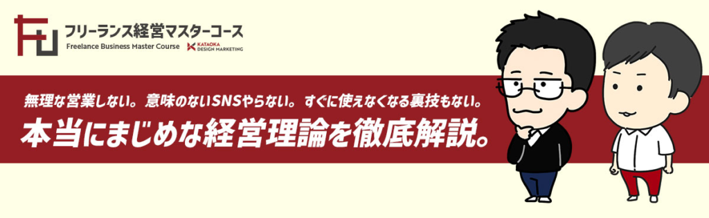 フリーランス経営マスターコースは、メイン講師である栗林が開発した初学者向けの