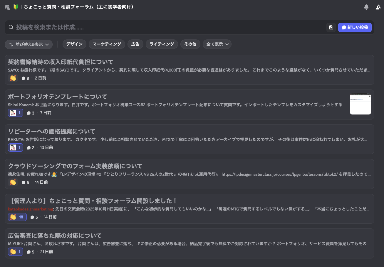 そこで本記事では、LPデザインマスタークラスで運営中の「LPデザインマスタークラス参加者限定オンラインサロン(Discord」についてご紹介します。