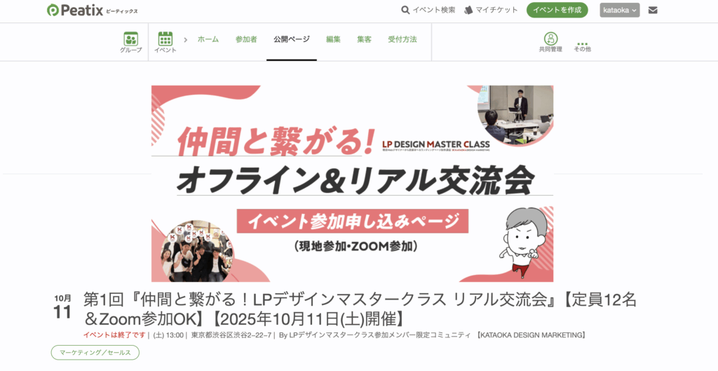 LPデザインマスタークラスでは、オンラインMTGやオンラインサロンでのサポート活動に加えて、直接講師である片岡や他参加メンバーがリアルで集まって交流をする機会を設けています。