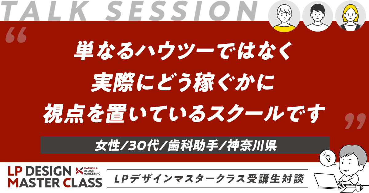 片岡さんの講座は、Adobeのソフトの使い方や、HTM Lの構築の仕方など、単なるhowtoではなく、実際にそれを使いどう稼げるようにするか。というところに視点を置いているスクールだと感じていますね。